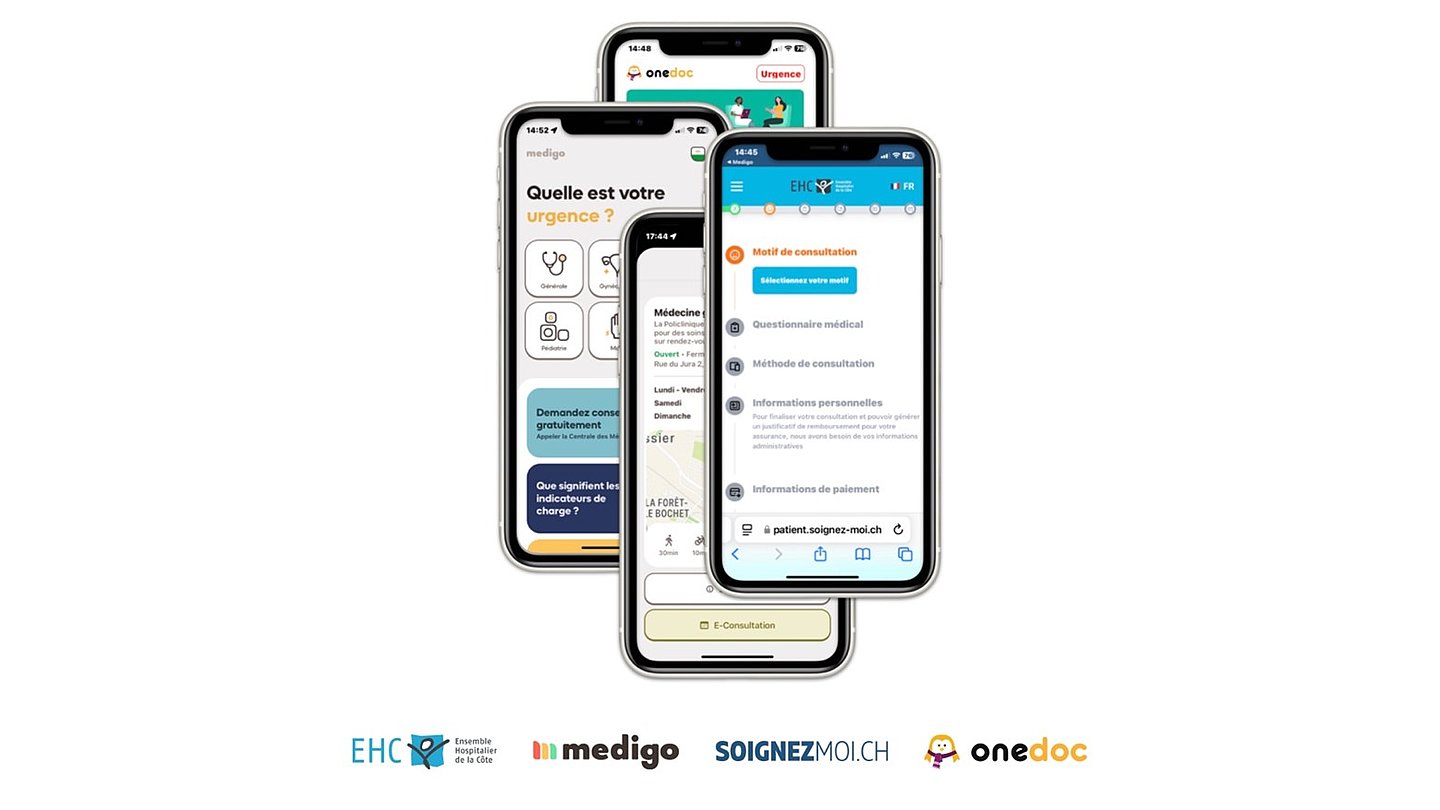 Medigo, Soignez-moi.ch, OneDoc et l’Ensemble Hospitalier de la Côte (EHC), concrétisent ensemble un projet digital d’aiguillage des patient·e·s en situation d’urgence « debout ».