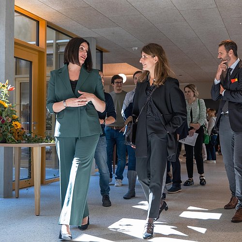 Les invités ont ensuite été guidés par Madame Marie-Laure Moutenet, Directrice de l’hébergement à l’EHC, à travers les nouveaux locaux. « Les résidentes et les résidents sont déjà venus voir, ils apprécient particulièrement l’aspect lumineux et se réjouissent d’emménager dans leur nouvel espace face au lac et aux montagnes », a-t-elle déclaré.
